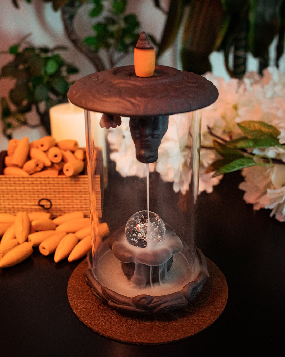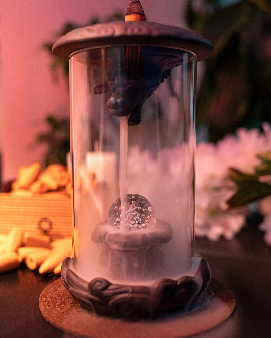 The smoke generated by the cones flows downwards, giving a particular cascade effect, hypnotic and relaxing on the sphere.